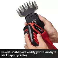 Einhell sladdlös gräs- och busksax GE-CG 18/100 Li-Solo är en effektstark medlem av den smarta Power X-Change-familjen. Det batteridrivna redskapet är ett bekvämt alternativ för manuella grensågar eller häcksaxar. Den är dessutom lättare, tystare och mer flexibel än varianter med sladd eller som är bensindrivna, och därmed perfekt för klippning, formning eller gallring av buskar och träd. Gräskapbladet är perfekt för skötsel av gräskanter (100 mm). För häck- och buskskötsel är de laserskurna och diamantslipade buskknivarna perfekta. Verktygsbytet sker mycket enkelt och utan verktyg. Under användning ger softgrip perfekt grepp och ergonomi vid varje rörelse. Det täckta växelhuset skyddar under användning och vid rengöring av beröringspunkter med delar som är smorda med växelolja. För drift krävs 1x 18 Volts PXC-batteri. Batteriet och laddaren ingår inte i leveransen och dessa kan erhållas separat.