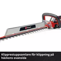 Einhell Professional sladdlös häcksax GP-CH 18/61 Li BL-Solo förenar kraft och flexibilitet: Som del i Power X-Change-familjen från Einhell drivs den med ett effektstarkt 18 V litiumjon-batteri. Apparaten drivs dessutom med en Einhell PurePOWER Brushless-motor. Denna borstlösa motor har mer kraft och ger längre gångtid än vanliga kolborstmotorer. Efter en onlineregistrering gäller 10 års garanti på Brushless-motorn. Tack vare den låga vikten på 2,9 kg ligger den smidiga häcksaxen bekvämt i handen. Det vridbara bakre handtaget och det smala fronthandtaget möjliggör exakt formning och kapning. Den långa metallväxeln optimerar överföringen av batterikraften till exakta laserskurna och diamantslipade stålknivar med en kapningslängd på 61 cm och ett tandavstånd på 26 mm. Svärdlängden är därmed 67 cm. Även mellanstora till stora häckar kan klippas optimalt. Hastighetsregleringen i två steg ger ännu bättre klippresultat: ECO-läget möjliggör en lång batteritid, medan MAX POWER-läget ger optimal klipphastighet, för att även tjockare grenar ska kunna kapas. Anti-blockersystemet ger optimal arbetssäkerhet. Snabb hantering av klipprester möjliggörs tack vare demonterbar klipprestuppsamlare. För att skydda kniven ingår ett stabilt koger i leveransen. Tillsammans med stötskyddet blir transport och förvaring en säker sak. Den sladdlösa häcksaxen levereras utan batteri och laddare. Dessa kan köpas separat.