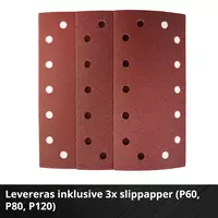 Einhell sladdlös oscillerande slip TE-OS 18/230 Li-Solo är en kraftfull medlem i den flexibla och internt kombinerbara Power X-Change-familjen från Einhell. Den robusta, kraftfulla oscillerande slipmaskinen är perfekt lämpad för slipning av jämna ytor, exempelvis arbetsstycken, golvbrädor eller paneler. Den material- och användningsanpassade varvtalsregleringen sker med varvtalselektroniken. Tack vare mikrokardborre och klämanordning kan man snabbt och enkelt byta slipmedel på den robusta och långlivade fotplattan av aluminium. Greppytorna som är utrustade med softgrip gör att den ligger fast och säkert i handen. Dammpåsen samlar upp eventuellt slipdamm. Dessutom finns det möjlighet att ansluta en dammsugare för maximal renhet på arbetsytan. Levereras inklusive tre slippapper för omedelbar projektstart. I leveransen ingår inte batteri och laddare (kan köpas separat).